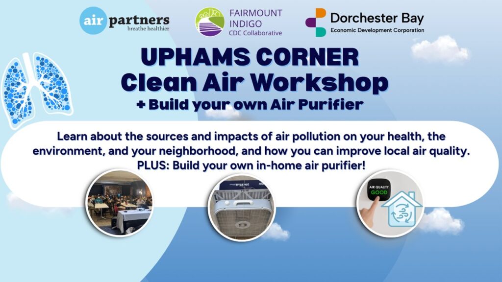 Join the Fairmount Indigo CDC Collaborative, Air Partners, and Dorchester Bay EDC for an engaging, hands-on community workshop where we will explore the importance of clean air and its impact on our health […]